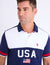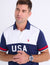 Color Block USA Appliqué Piqué Polo Shirt – Patriotic Style with a Sporty Edge