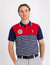 Marking a milestone in timeless style, this polo shirt features a modern color block design enhanced with bold horizontal stripes across the front. The 135th Anniversary crest and signature logo embroidery add a distinctive heritage touch. Designed with a structured collar and two-button placket for a classic finish, this versatile polo is an ideal choice for both casual and elevated looks. Model is wearing size medium.