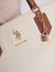 Sophisticated Padlock Detail: Features a polished, branded gold-tone padlock charm suspended from a delicate metallic chain for a touch of designer flair.