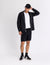 This men's lightweight hooded windbreaker combines clean design with everyday functionality. Made from wind-resistant fabric, it features a full front zip with contrast detailing, along with two secure zippered side pockets. The jacket includes an adjustable draw cord hem and adjustable Velcro sleeves for a personalized fit and a hood for added protection against the elements. A subtle printed logo on the chest adds a classic, sporty touch. Ideal for layering, this windbreaker is perfect for transitional weather and casual wear alike. Model is wearing size medium.