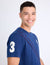 A: The right sleeve features a bold embroidered “3” patch — a nod to classic polo uniform style.