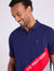 Stand out with the Piqué Color Block Zipper Polo Shirt, a fresh twist on the timeless polo shirt. Featuring bold diagonal color-blocking in navy, red, and grey, this shirt brings energy and modern flair to your everyday look. The zip placket adds a sleek, contemporary edge, while the embroidered USPA logo ensures classic authenticity. Crafted from breathable piqué, it delivers all-day comfort and a polished finish. Perfect for weekends, casual Fridays, or sporting-inspired style.