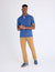 Collar and placket feature clean woven contrast trim