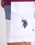 Make a statement on the sand with the 10" Colorblock Stripe Cargo Swim Shorts from U.S. Polo Assn.. These high-impact trunks feature a dynamic tri-tone colorblock design—transitioning from deep navy to a vibrant red-and-white horizontal stripe pattern, finished with a crisp white base. Built for the man who demands both style and storage, these shorts combine a protective extended length with specialized cargo pockets for all your seaside essentials.