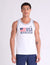 Show your spirit in the USA Graphic Print Tank with Piping Detail from U.S. Polo Assn. This crisp white tank features a bold, patriotic chest graphic and a refined sleeveless silhouette. Designed with a classic crew neckline and athletic piping detail along the collar and armholes, it offers a clean, structured look that stands out. Crafted from soft jersey fabric, it provides the perfect combination of lightweight comfort and Americana-inspired style.