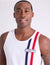 This tank is engineered for movement. Pair it with navy horseman-print lounge shorts for a coordinated athletic look at home, or wear it with performance joggers for your next training session. Its clean white base and bold accents make it an easy choice for sun-filled outdoor activities where staying cool is the priority.