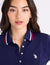 Bring a touch of sporty sophistication to your everyday wardrobe with the U.S. Polo Assn. Women’s 3/4 Sleeve Signature Stripe Swing Dress. Designed in a soft stretch fabric, this flattering silhouette features a polished polo shirt collar with a signature-stripe trim, a functional button placket, and feminine 3/4 sleeves. The swing-style skirt offers graceful movement and a comfortable fit, while the detachable striped belt cinches the waist for a classic hourglass shape. Finished with the signature U.S. Polo Assn. embroidered logo at the chest, this versatile dress is a go-to for casual days, brunch outings, or country club flair.