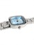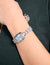 LADIES SILVER OVAL WATCH WITH BLUE FACE
