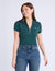 HALF ZIP PUFF SLEEVE HEATHER POLO SHIRT