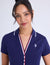 Modern Plunge Neckline: Features a button-less deep-V opening with a classic polo collar, providing a contemporary twist on traditional sport styling.