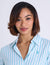 The Long Sleeve Knotted Stripe Shirt combines the structure of a classic dress shirt with the ease of modern fashion. Its knotted front design brings effortless sophistication, making it a go-to piece for both office wear and casual outings.