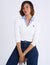 Soft rib-knit body with woven collar and placket for a layered look