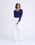 A: No, the woven collar is attached to the knit top, giving a seamless layered look.