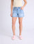 A: This denim is engineered for a premium structured look while maintaining a comfortable amount of flexibility, ensuring the shorts move with you without losing their shape during transit.