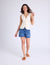 A: This denim is engineered for a premium structured look while maintaining a comfortable amount of flexibility, ensuring the shorts move with you without losing their shape.