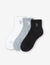 6-pack of quarter crew socks in assorted core colors (black, grey, white)