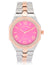 LADIES TWO TONE LINK WATCH WITH PINK FACE