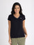 METALLIC TRIM V-NECK T-SHIRT